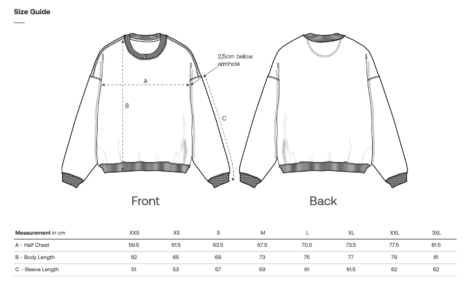 Schwarzes Crewneck Sweatshirt mit weißem Front- und Backprint. Pflegehinweise: dem Klima zuliebe kalt waschen und an der Luft trocknen. Vor dem Waschen auf links drehen schont den Druck.